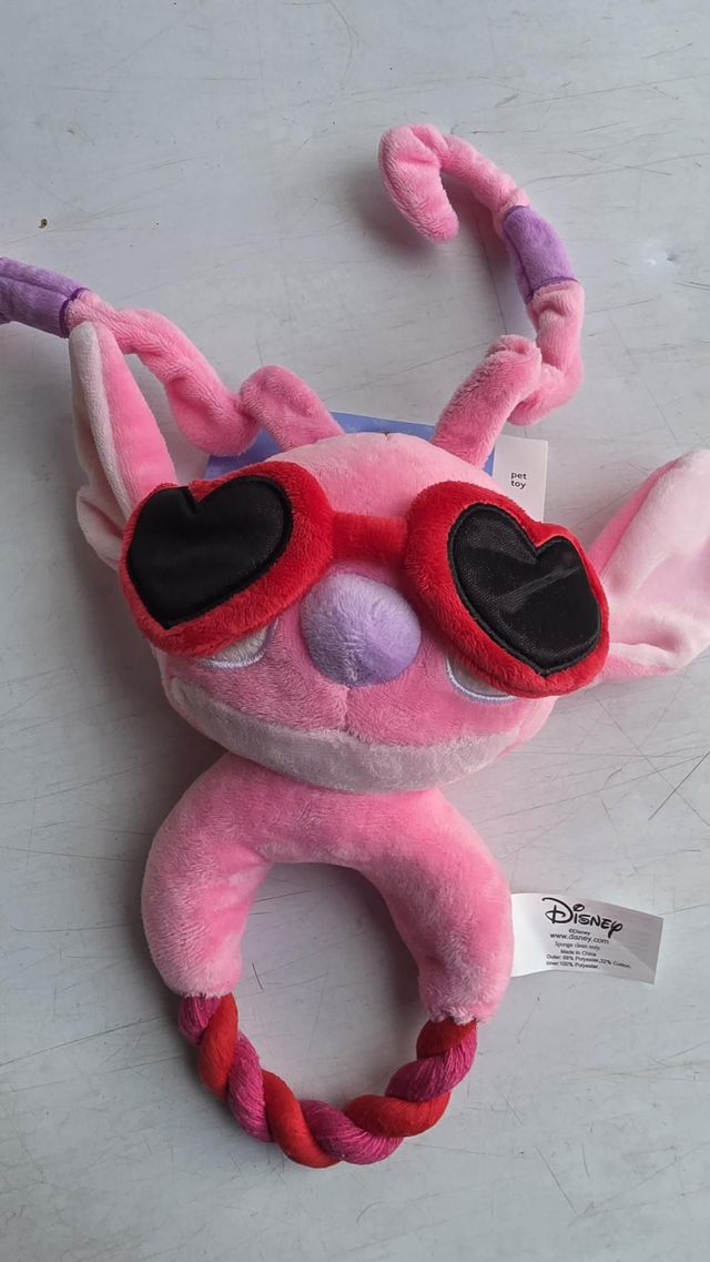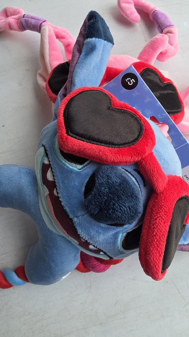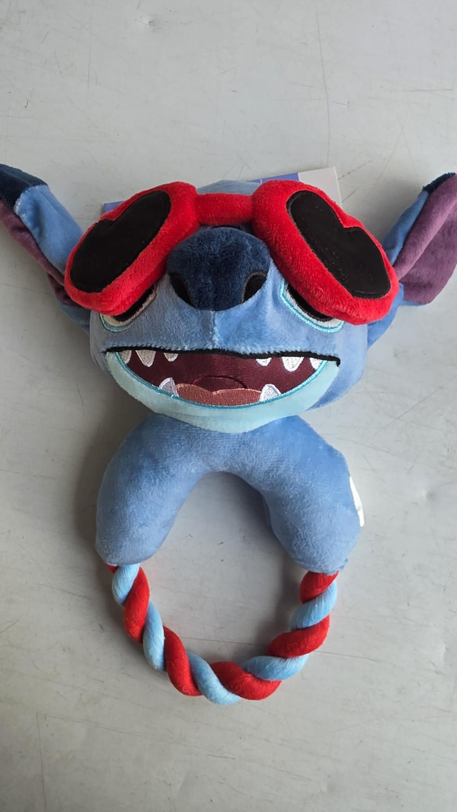 Disney Stitch (Lilo &) Dog Toy Plush With Heart Sunglasses Squeak and Rope Twist