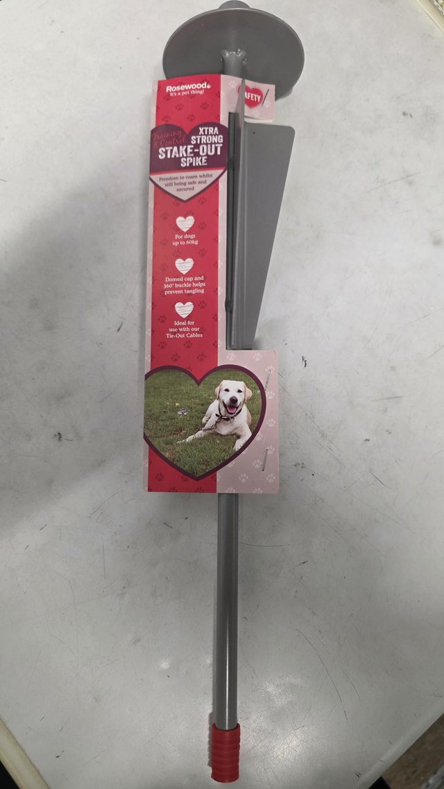 Ideal for use in the garden, park, walking or camping, the Rosewood Xtra Strong Stake-Out Spike can be used on dogs up to 60kg.